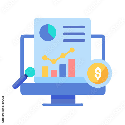 © Xihan, Fototapeta premium Financial data analysis on computer screen with dollar coin