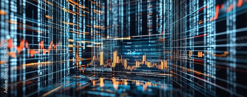 Obraz premium Financial data digital trends interface concept . Dynamic data visualization with graphs and data.