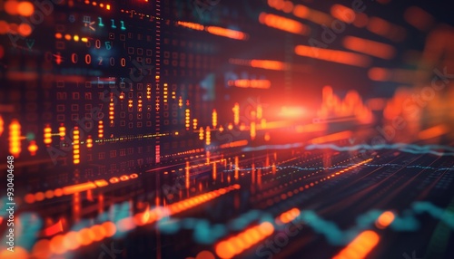 Fototapeta premium Financial Data Display with Glowing Red Indicators
