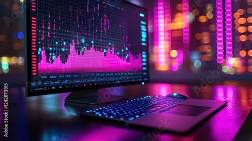 © Penatic Studio, Obraz premium Financial Data Displayed On Computer Screen At Night