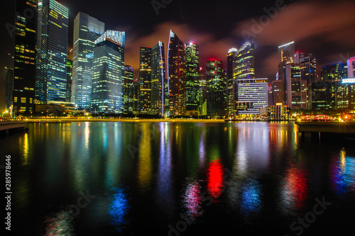 © De Visu, Naklejka premium Financial district Marina Bay in Singapore night view.