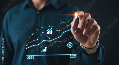 Fototapeta premium 2026 Financial Growth Forecast and Business Analytics Strategy Concept with Trendline and Data Icons
