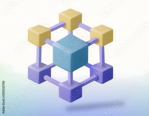 Fototapeta premium Financial inclusion, economy and technology : 3D icon of Blockchain technology, decentralized finance, secure transactions.