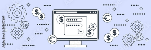 Fototapeta premium Financial security, money protection, bank account control flat contour style...