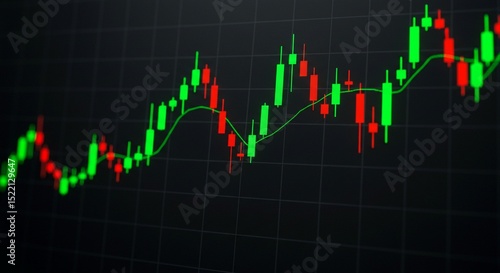 © David Yudha Ch, Naklejka premium Financial Stock Chart with Green and Red Candlesticks on Black Background