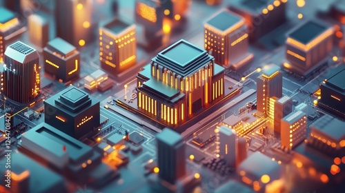 © Chantip, Obraz premium Financial technology, digital banking future, interconnected economic systems, 3D illustration.