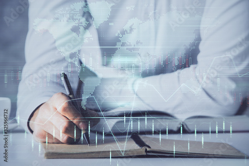 Fototapeta premium Financial trading chart multi exposure with man desktop background.