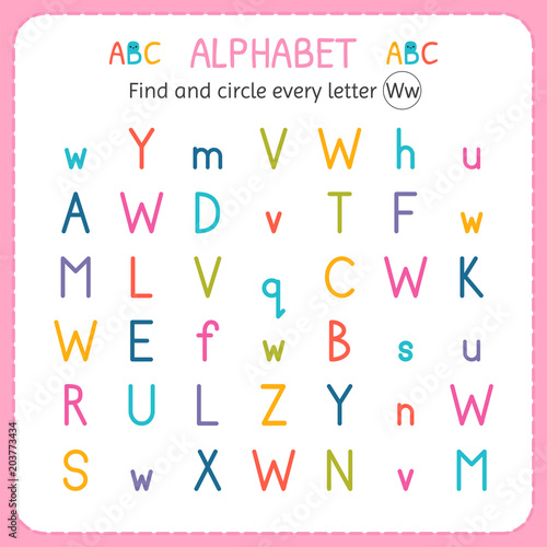 © Helen Sko, Fototapeta premium Find and circle every letter W. Worksheet for kindergarten and preschool. Exercises for children