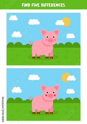 Obraz premium Find five differences between two cute pigs.
