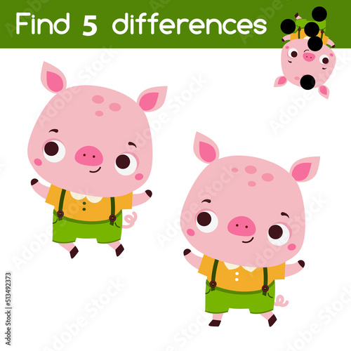 © ksuklein, Naklejka premium Find the differences educational children game. Kids activity with cute pig