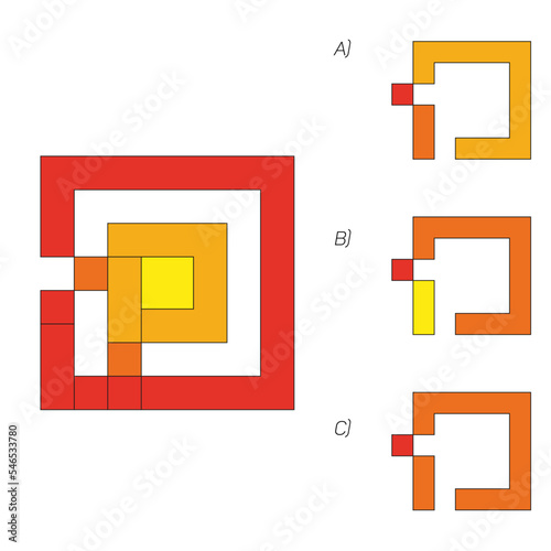 Fototapeta premium Find the missing piece. Visual intelligence questions IQ TEST, visual intelligence questions. Find the missing, Find the missing piece