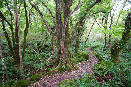 Obraz premium fine autumn path through mossy rocks and old trees