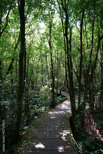 © SooHyun, Obraz premium fine boardwalk through refreshing spring forest