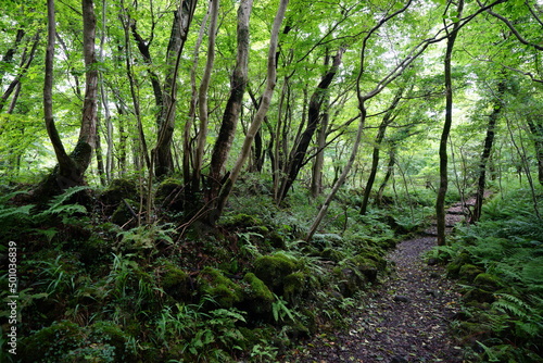 © SooHyun, Obraz premium fine pathway through mossy rocks and old trees