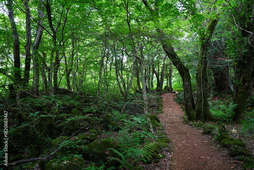 © SooHyun, Obraz premium fine spring path though mossy rocks and old trees