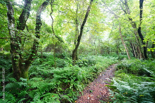 © SooHyun, Fototapeta premium fine summer path through dense ferns