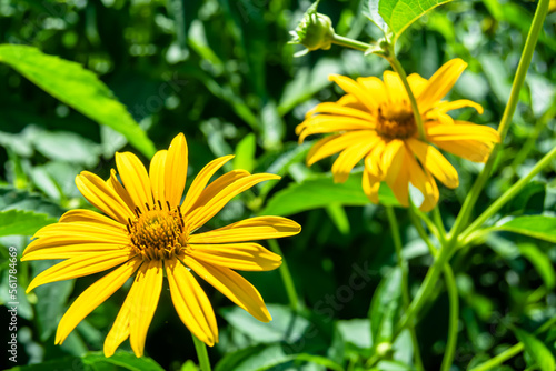 Fototapeta premium Fine wild growing flower aster false sunflower on background meadow