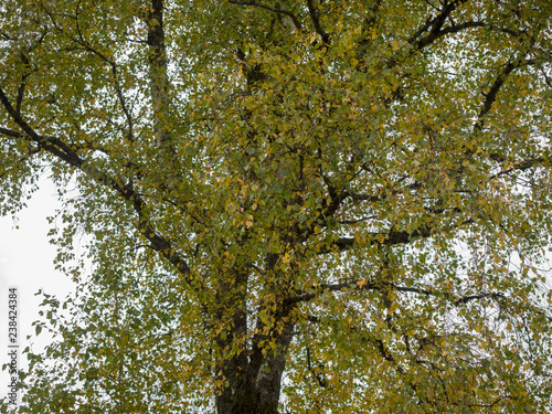 © Marc, Fototapeta premium Fines feuilles découpées, jaune, bronze, du peuplier tremble en début d'automne (Populus tremula)