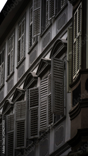 © Karon Malle, Fototapeta premium Finestre con persiane