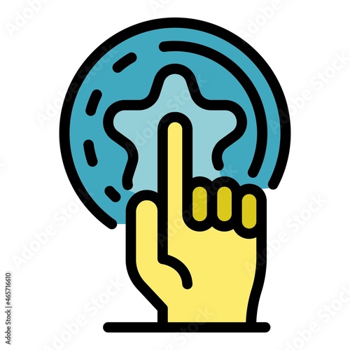 © ylivdesign, Obraz premium Finger and star icon. Outline finger and star vector icon color flat isolated