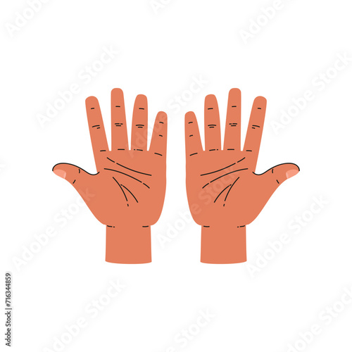 Obraz premium Finger sign ten 10 number, communication gesture, count infographic, hands gesture even number vector illustration