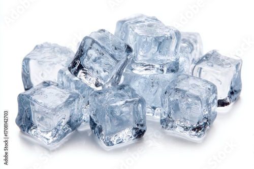 © Blue Rain, Obraz premium Finger-sized ice cubes, white background