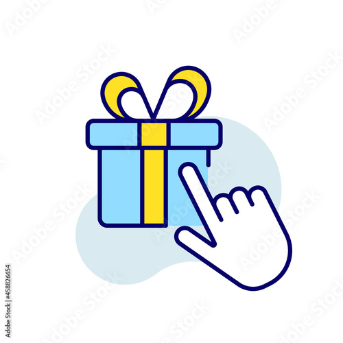 Fototapeta premium Finger touch RBG color icon. Gift box thin line vector illustration.
