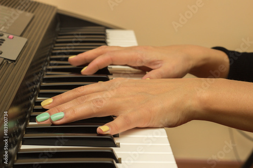 Fototapeta premium Fingers playing electronic piano keyboards