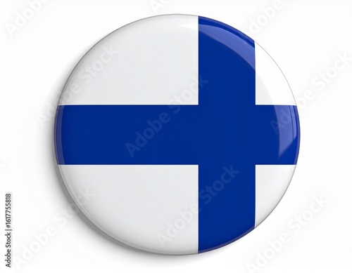 © Shoaib, Obraz premium Finland Flag Button on White Background