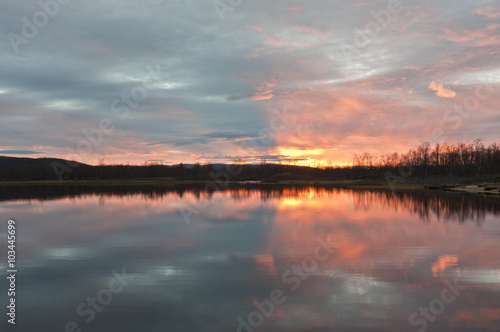 © vkhom68, Fototapeta premium Finland, sunset / Finland is a country of thousands of lakes and islands, about 188 000 lakes and 179 000 islands. The area with the most lakes is called Finnish Lakeland.