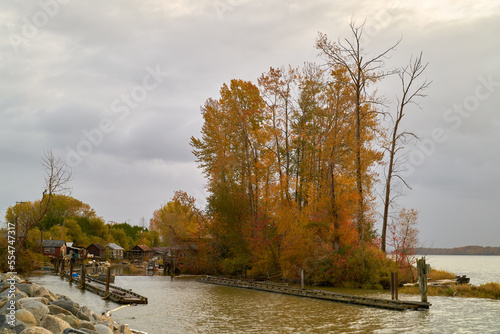 Naklejka premium Finn Slough Autumn Fraser River. Finn Slough in Fall on the banks of the Fraser River near Steveston in Richmond, British Columbia, Canada.