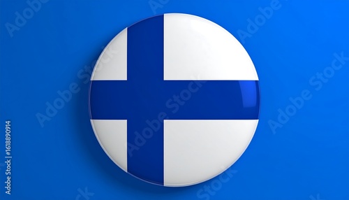 © prayogo, Obraz premium Finnish flag button on blue backdrop