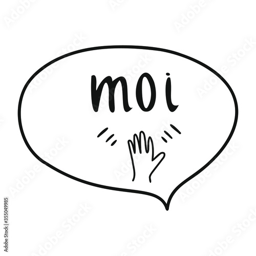 © Anastasiia, Fototapeta premium Finnish language word means hi. Waving hand sticker element says hello. Vector illustration isolated on white background.