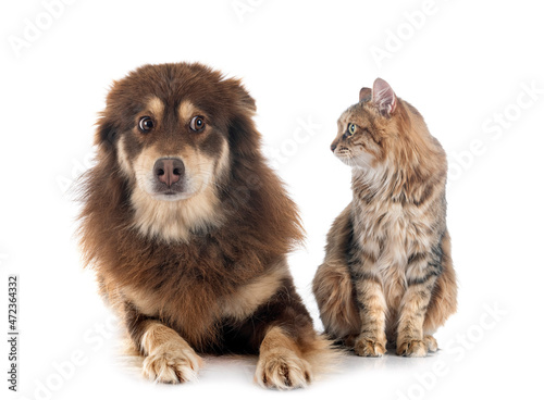 © cynoclub, Obraz premium Finnish Lapphund and cat