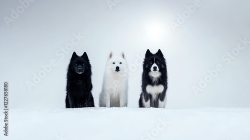 Naklejka premium Finnish Lapphund standing under the northern lights, magical arctic landscape