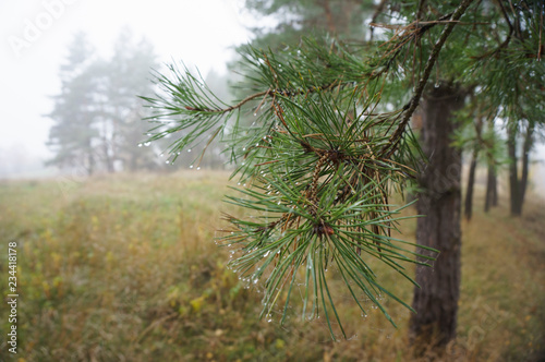 © Ruslan, Obraz premium Fir Branch With Pine Cone And Snow Flakes - Christmas Holidays Background