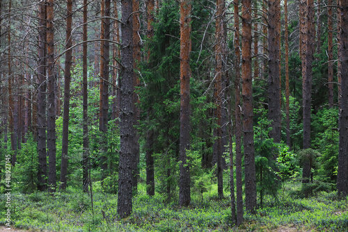 © alexkich, Fototapeta premium Fir branches with cones. Pinery. Trees in the forest. Glare of the sun.
