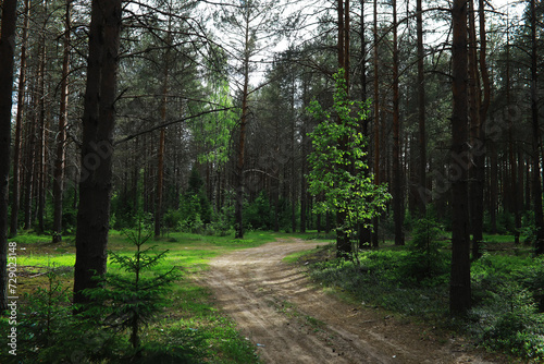 © alexkich, Fototapeta premium Fir branches with cones. Pinery. Trees in the forest. Glare of the sun.