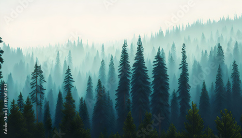 © MDNAJIMODDIN, Obraz premium Fir forest in vintage retro style with beautiful landscape. Generative AI