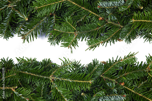 © yellowj, Fototapeta premium Fir tree branch frame on white