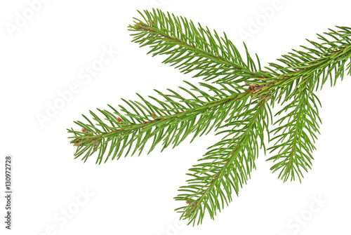© domnitsky, Obraz premium Fir tree branch isolated on a white background