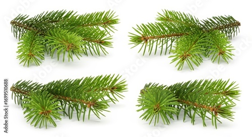 © Wayan, Obraz premium Fir Tree Branch on White Background
