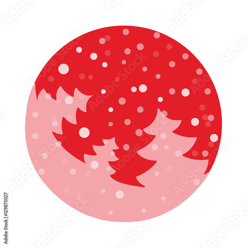 Naklejka premium Fir tree flat with snowflakes. Vector illustration. Pink fir on hot red...