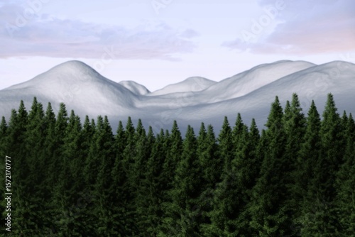 © vectorfusionart, Fototapeta premium Fir tree forest in snowy land