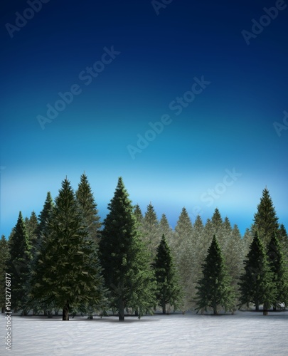 © vectorfusionart, Fototapeta premium Fir tree forest in snowy landscape