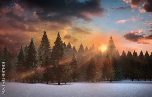 © vectorfusionart, Fototapeta premium Fir tree forest in snowy landscape