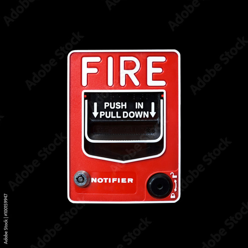 Naklejka premium Fire alarm switch on black background