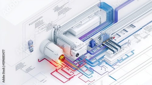 Fototapeta premium Fire alarm system concept. A schematic diagram of a full-wall fire alarm system, suitable for technical reference and installation guidance.