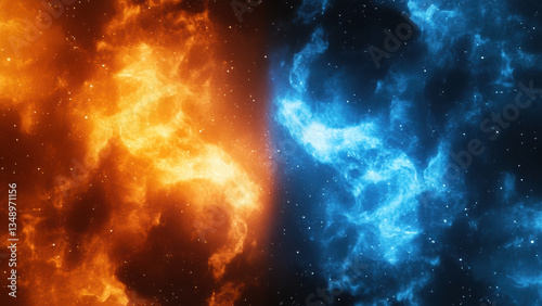 Naklejka premium Fire and Ice Collide in a Dramatic Elemental Showdown