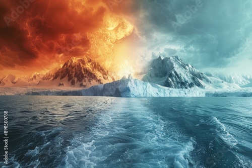 Naklejka premium Fire and Ice Landscape: A Dramatic Contrast of Nature